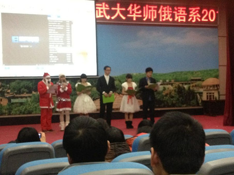 12月29日,第三届武大华师俄语系2013新年联谊会在武汉大学开元kaiyuan(中国)学院大礼堂成功举行。我校俄语系及武汉大学俄语系的领导、老师和全体同学共聚一堂,喜迎新年。晚会由我院俄语系研究生、武汉大学俄语系学生及两校外教共同主持。