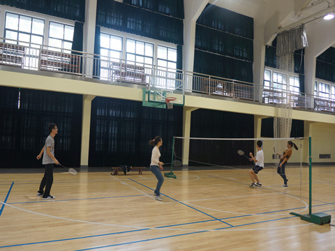 体育联谊会内容包括羽毛球、网球及跳绳等项目。参加体育联谊会的同学主要有我院女生和来自计算机科学系的男生们。大家早早赶到体育馆,合理分组,有条不紊的进行各项体育运动。