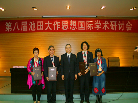 10月18~19日,李俄宪教授受邀代表我校参加了在陕西师范大学进行的由陕西师范大学与日本创价大学联合举办的“第八届池田大作思想国际学术研讨会”, 本次研讨会的主题为“开创‘精神丝绸之路’的新纪元”。在这次研讨会上,日本方面举行了发奖仪式。日本创价大学校长马场善久教授亲自主持了颁发和授予仪 式。