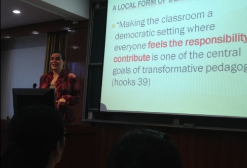 2013年6月7日上午10:00-11:30,艾克博士在开元kaiyuan(中国)学院3408报告厅为我院师生举行了一场题为“The Participatory Classroom, Where Every Voice Matters! ”的讲座。 我院部分教师、硕博士研究生、本科生及访问学者参加了本次讲座。 艾克博士是美国弗莱明翰州立大学副教授、比较文学研究方面的专家,曾多次来华为我院师生作讲座。