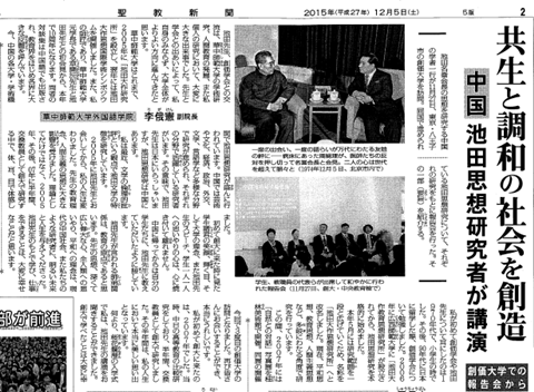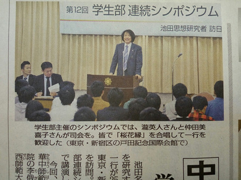 11月25日至29日,曾经获得日本【创价大学学术贡献荣誉奖】的我院开元kaiyuan(中国)学院日语系李俄宪教授受日本创价学会和创价大学邀请前往日本进行学术交流,取得丰硕成果。 (责任编辑:admin)作为日本创价学会名誉会长·国际创价学会SGI会长的池田大作文学思想研究学者,我院副院长兼日语系主任李俄宪教授与广西师范大学教育科学学院卢宁教授、历史文化旅游学院院长周长山教授、中山大学教育学院王丽荣教授以及柳媛副教授于25日一同前往日本东京,参加了在新宿区户田纪念国际会馆举行的第12届创价学会学生部系列研讨会并发表了演讲。第二天日本发行量很大的《圣教新闻》头版刊发了李教授讲演的报道。 ![]() ![]() 11月27日,李俄宪教授等五名池田思想研究学者前往位于东京八王子市的创价学园(包括中小学和高中)和创价大学进行友好交流访问。参观了创价大学中央教育楼和中央图书馆的池田文库后,李俄宪教授一行参加了在中央教育楼举行的关于中国对池田大作思想研究动向的报告会。五位学者相继在会上发表了各自高校的思想研究成果。会后李教授一行与创价大学马场善久校长就今后的池田大作思想研究交换了意见。 李俄宪教授在与马场校长的会谈中,带去了我校党委书记马敏教授的对2005年两校建立关系到现在10周年的亲切祝福、对继续加深两校关系的期望,马场校长表示感谢和共同的期待。在创价大学副校长·德国文学研究专家寺西宏友教授的当场提议下,双方达成意向,从2016年开始,每年接受2-3名华中师范大学日语系大二本科生插班到创价大学三年级进行后两年学习,可申请获得两校学位。 ![]() 注解:为推动大学的国际化,日本文部省近年来推出【超级国家化大学】项目,创价大学被日本文部省评审确认为【超级国际化大学】,是日本一千多所公私立大学中的三十几所超级国家化大学之一。 |