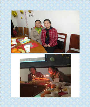 大英二室精心筹备了此次茶话会,教室大屏幕上以音乐相册的形式回顾了两位老师近四十年的风采:从刚承担起教师这一神圣使命,到三尺讲台默默耕耘奉献多年,到为公外系取得的多项各个级别的荣誉,到与各位同仁的同甘共苦。一张张精心收集的照片让两位老师热泪盈眶,随即跟大家分享了她们这几十年来对教学的无限热爱和对自我提升的不懈追求,同时对诸位同仁表示深切的感激并表达了对年轻教师的殷切希望。另外每位老师录制的祝福视频表达了大家对两位老师的依依不舍和浓浓祝福;教研室为两位老师精心准备的礼物、鲜花以及为庆祝人生第二季开始的蛋糕;同时教师代表还发表了感言和致谢辞。大家的情真意切让两位老师既流下了感动的泪水,也发出了开怀的笑声。最后大家用热烈的掌声共同祝福退休教师们明天的生活更加精彩美好。