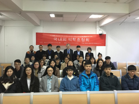 权教授讲解和提问并重,耐心启发学生,并对学生问题给予详尽的解答。学生纷纷表示受益匪浅,既对朝鲜时代历史和文化有了全面系统的了解,也引发了学生对韩国文学的兴趣,对今后韩国语文学学习提供了思路,甚感学校和系里提供这样精彩的学术讲座。 最后聆听本次讲座的韩语系师生与权五荣教授拍照留念,本次学术讲座圆满落幕。