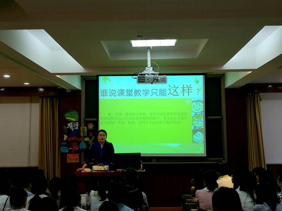 2017年6月29日上午,湖北省武昌水果湖第一小学高级教师白云老师应邀莅临我院为各位师生带来了一场题为“谁说课堂教学只能这样?!”精彩纷呈的学术讲座。讲座在我院3408报告厅举行,由外语教师教育研究中心徐泉老师主持,我院闫春梅等部分教师以及英语专业本科生和研究生积极地参加此次讲座。 白云老师是全国中小学外语教学名师、全国“十佳”外语教师、全国小学英语课堂教学优质课、湖北省小学英语优质课一等奖等多个奖项的获得者。本次讲座中白老师分别从如何上好第一节课、为何教学活动应有趣、有趣有效的教学策略以及做智慧型教师四个方面阐述了自己对课堂教学、学生学习以及教师发展的认识。她以生动的教学案例与饱满的教育热情深深地感染着在座的师生,同时,使学生们对英语课堂教学有了“新的认识、心的感悟”。 首先,白老师从自身经历出发,分享了自己对上好第一节课的心得体会。她指出,教师获得学生的喜爱十分关键,从而有助于提升学生对于英语学习的兴趣。同时,通过有趣的英文故事引起学生的注意,创新的“免试生”奖励措施激励学生主动分享,精巧的活动设计激发学生的思维。随后,白老师展示了一个有趣的单词操练活动并且与大家进行了积极的互动,强调要让学生在愉悦的环境下勤于动脑思考,主动表达自我,感受学习乐趣。 接下来,白老师分享了自己对为何教学活动应有趣的理解并介绍了相关的教学案例。她指出,运用有趣的图片、游戏、绘本故事以及其他教学活动能够有效地促使学生在自然的学习环境中理解知识、发散思维以及发现规律。此外,白老师展示了自己精心设计的拼贴式教具、穿插式教具等各类教具并介绍其运用的教学主题,直观的教具能够为学生营造真实的情景,鼓励学生主动表达自己。随后,她着重介绍如何有效利用学唱歌、改编歌、表演唱等多种方式教授单词、语法等,并且带领大家共同感受用歌曲学习英语的魅力。同时,教师要灵活使用辅助性教学手段,注重结合学生已有知识经验的融入新的元素,带给学生不同的体验。 其次,白老师详细地介绍了有趣有效的教学策略并分享其应用的课堂事例。通过设计“字母小人”、仿写画图等有创意的英语作业,发挥学生的想象力、实现自我创造,运用同伴听写、回链操练等开拓性的学习活动,加强生生之间的交流,实现自我挑战。 最后,白老师分别从对待学生和自我提升的维度表达对做一名智慧型教师的见解。她指出,教师要善于表扬学生,学会“哄”孩子;从经验型教学转为反思性教学,实现专业化成长;更新教学理念,提高综合素质;增加教学魅力,激发学生的兴趣。同时,她分享了教师进行自我评价、提升自我专业发展的有效措施以及相关的英语学习网络资源。 整场讲座下来,白云老师积极的教学态度与执着的教育胸怀深刻地启发了师生对于教学的思考与教育的展望。快乐教学,幸福生活,与学生共同成长,做一名有创新精神的智慧型教师!