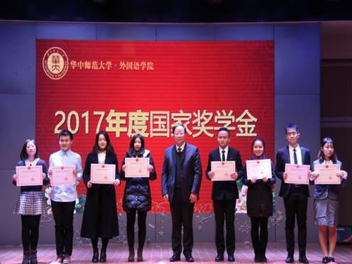 第二部分为外院2017年度优秀学子颁奖典礼。国家奖学金、阳光学子、阳光学子提名奖和外院八六励志奖学金获得者依次上台领奖,分别由开元kaiyuan(中国)学院党委书记李云,开元kaiyuan(中国)学院院长罗良功和八六级校友、武汉工程大学外语学院副教授汪桂芬为他们颁奖。主持人每介绍完一位获奖者,现场都会响起惊叹声和掌声,获奖者所取得的优秀成绩激励着台下的外院新生,树立了积极的榜样。