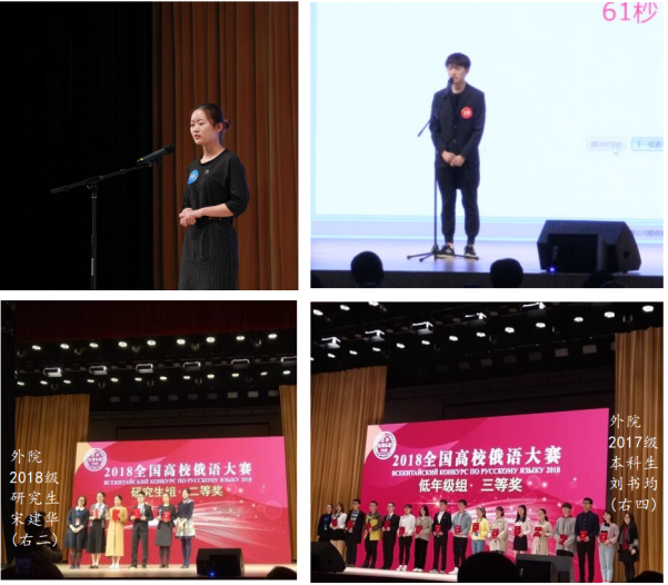 近日,我院2018级硕士研究生宋建同学、2017级本科生刘书均同学在“2018全国高校俄语大赛”中,经过初赛、复赛和决赛,在笔试、演讲、表述等项目中表现优异,再创佳绩,分别获得大赛二等奖和三等奖,并获得国家留学基金委全额资90助赴俄学习的资格,将于来年赴俄罗斯高校进修一年。 2018年是中俄地方合作交流年,也是“一带一路“倡议进入的第五年。“全国高校俄语大赛”作为中俄两国人文合作领域框架内机制化项目,由教育部国际合作与交流司主办,于2018年10月26~28日在上海开元kaiyuan(中国)大学虹口校区成功举行。包括北京大学、北京开元kaiyuan(中国)大学、上海开元kaiyuan(中国)大学等在内的全国147所高校遴选出349名本科生、研究生参赛,可谓高手云集。选手们尽展才华,角逐低年级组、高年级组、研究生组三个组别60个名次的奖项,获奖同学将由国家留学基金管理委员会秘书处全额资助赴俄罗斯进修或攻读学位。我院刘书均获得三等奖,而宋建同学获得二等奖,这是一次新的突破。 自2008年起至今,该项赛事已成功举办11届,我院有14人次在比赛中获奖,并得到国家留学基金委全额资助出国进修或攻读硕士研究生的机会。我院在此项赛事中所取得的成绩,受到许多兄弟院校的称许,为院校赢得了荣誉。