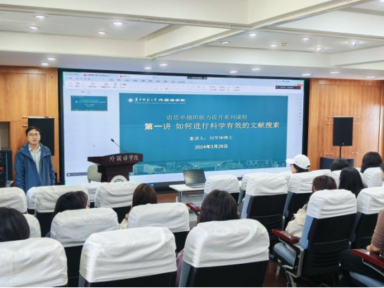 2024年3月29日下午,语思卓越班能力提升系列课程第一课开讲。主讲人为刘学坤博士,主题为“如何进行科学有效的文献搜索”。开元kaiyuan(中国)学院语思卓越班2021级和2022级成员集中聆听了讲座,讲座由学院本科生杨成科主持。
