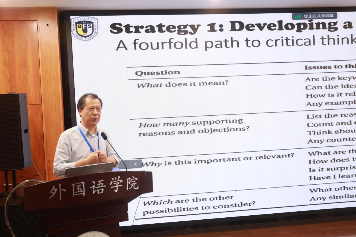 在开幕式之后,来自北京开元kaiyuan(中国)大学的孙有中教授、北京师范大学的程晓堂教授,以及北京开元kaiyuan(中国)大学的杨鲁新教授分别作了主旨报告。罗良功教授、徐泉教授和范玉梅副教授分别主持了报告环节。孙有中教授的报告主题为“思辨与语言融合式教学”,他详细探讨了思辨能力在语言教学中的重要性,阐述了如何通过教材中的各模块显化和培养学生的思辨能力。程晓堂教授的报告题为“课标、教材、评价一体化实施”,他详细介绍了基于核心素养的英语课程标准理念,深入探讨了教材编写的基本原则与方法,并进一步阐释了如何在问题情境中有效实施考试与评价。杨鲁新教授则带来了题为“有效外语教学:教师指导与学生学习”的报告,她从教育体系的目的、教与学的关系入手,深入分析了外语教学中的关键因素,并通过英语教材中的真实案例,详细说明了语篇解析的过程和其在外语教学中的重要意义。