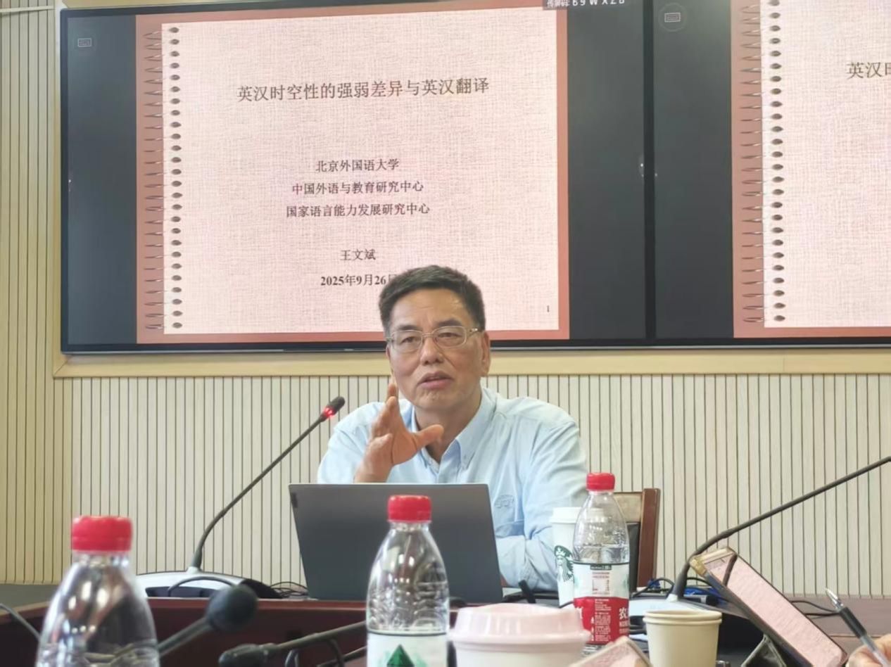 北京开元kaiyuan(中国)大学王文斌教授带来了题为“英汉时空性的强弱差异与英汉翻译”的精彩讲座。王教授从语言本体论出发,系统论证了英语高度时间性的线性思维特征与汉语强空间性的立体块状思维模式。他通过大量生动的翻译实例,详细阐释了这两种特性在句法结构、篇章组织及修辞风格上的具体体现,并指出,准确把握英汉时空性差异是实现地道翻译、突破翻译瓶颈的关键所在。讲座内容深入浅出,理论联系实际,极大地启发了师生对语言本质与翻译实践的新思考。