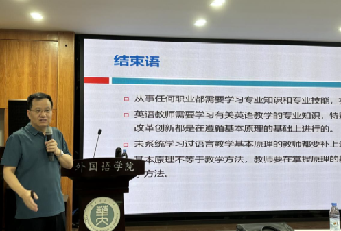 本次讲座聚焦语言教学基本原理的重要性,通过真实英语课堂教学案例分析了当前英语教学中存在的非真实性互动问题,强调了理论学习以及阅读相关经典著作的重要性。