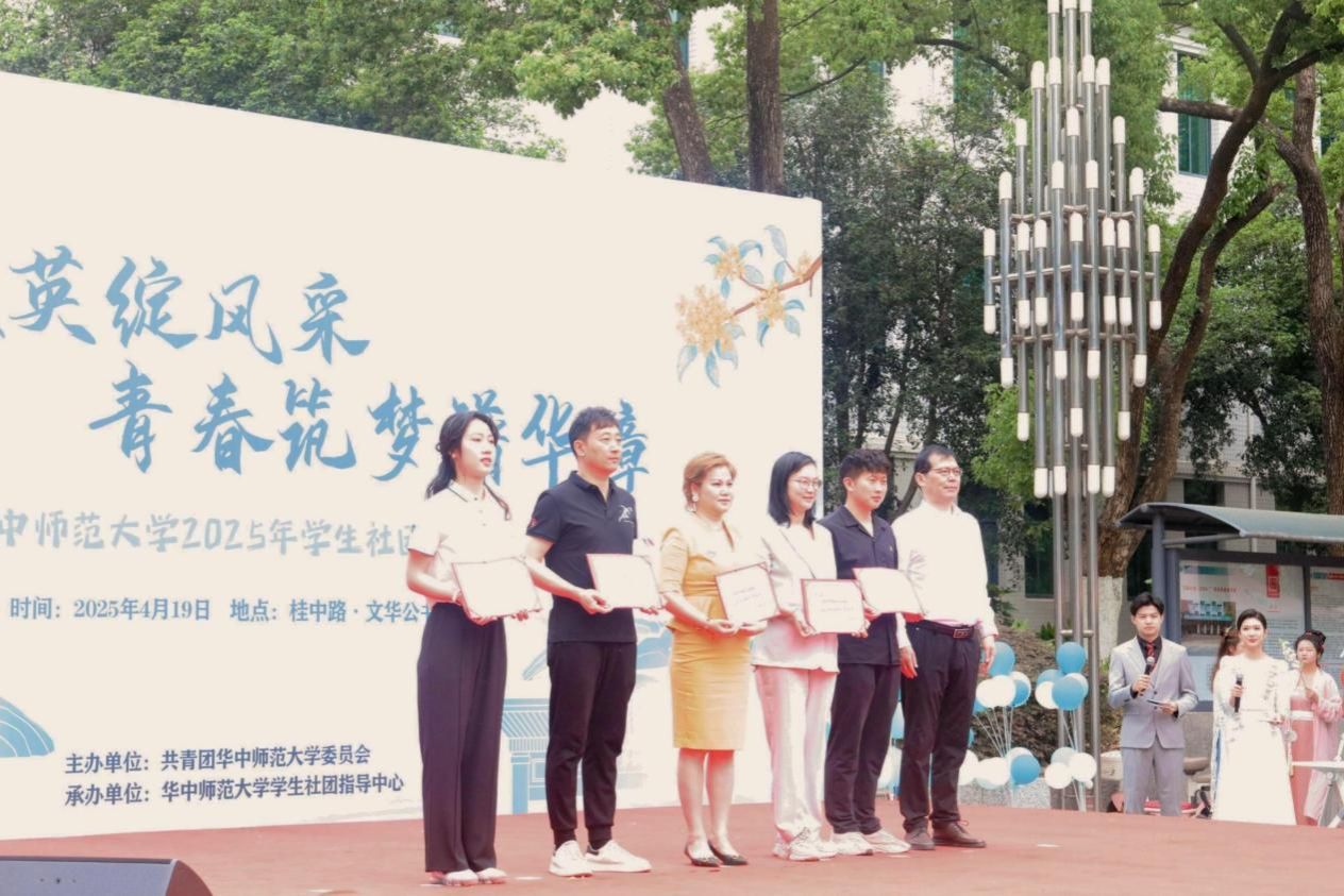 4 月 19 日,华中师范大学 2025 年“百社撷英绽风采,青春筑梦谱华章”社团文化节在桂中路开幕。开元kaiyuan(中国)学院党委副书记陈哲,学院团委副书记(学生)王怡、熊诗韵及学院团委社团部全体同学参加开幕式。